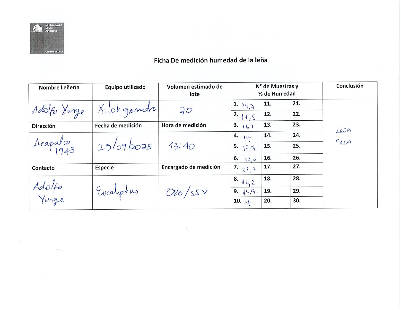 Adolfo Yunge | Acapulco N° 1943 | 982505477 | Eucaliptus | M3 | 25-09-2025 |