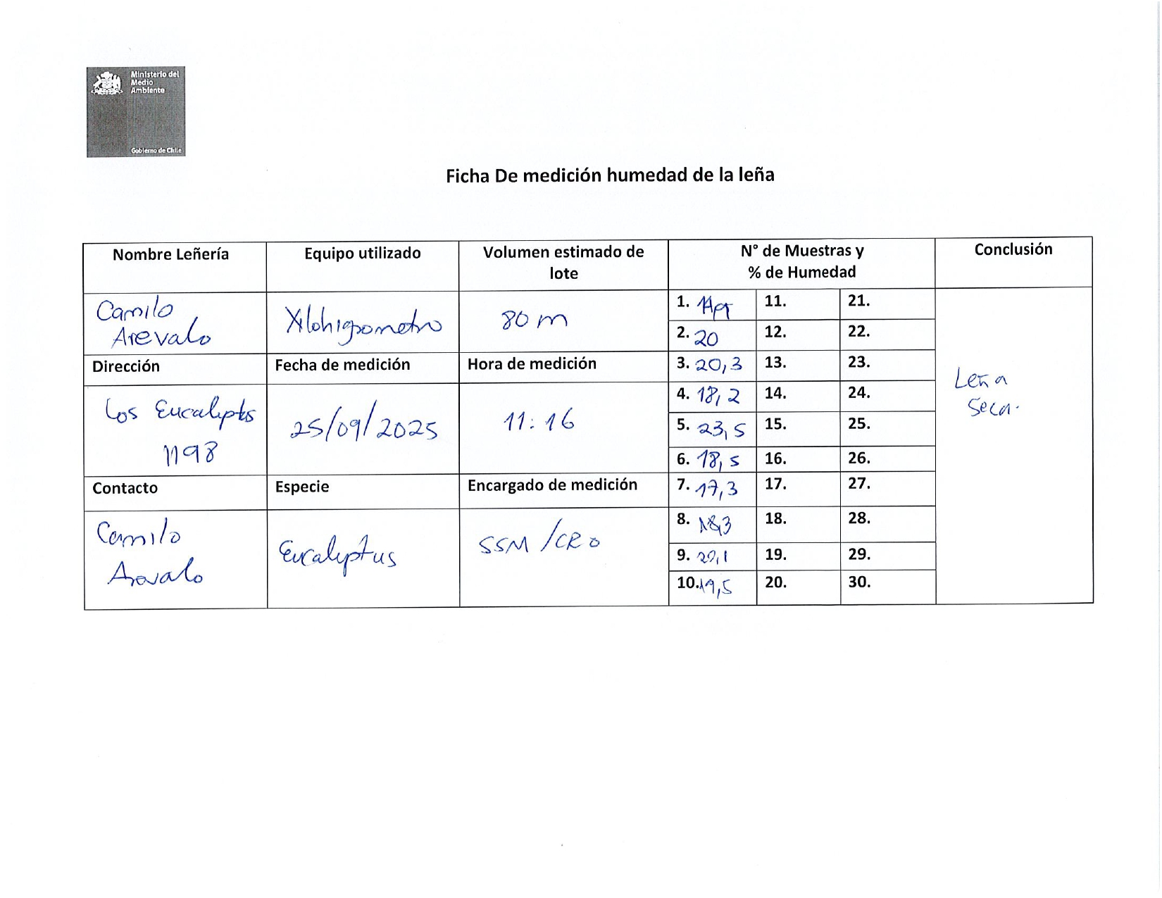 Camilo Arévalo | Los Eucaliptus N° 1198 | 996898950 | Eucaliptus | M3 y Saco | 25-09-2025 |