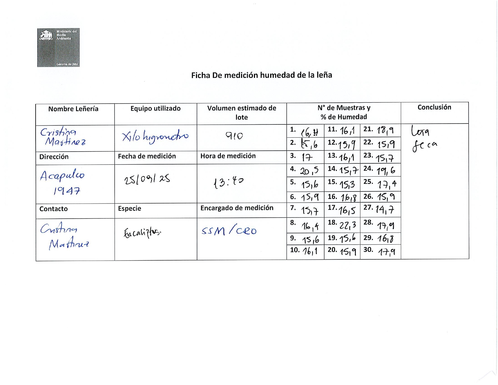 Cristina Martínez | Acapulco N° 1941 | 967617808 | Eucaliptus | M3 y Saco | 25-09-2025 |