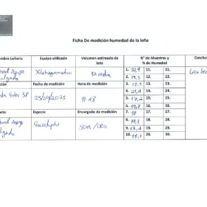 La medición del porcentaje (%) de humedad es realizada periódicamente con Xilohigrómetro DELMHORST J-2000.