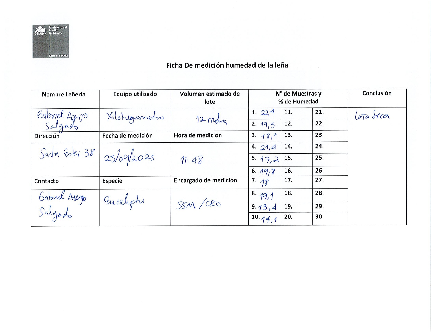 Gabriel Asenjo Salgado | Santa Ester N° 38 | 982131375 | Eucaliptus | M3 | 25-09-2025 |
