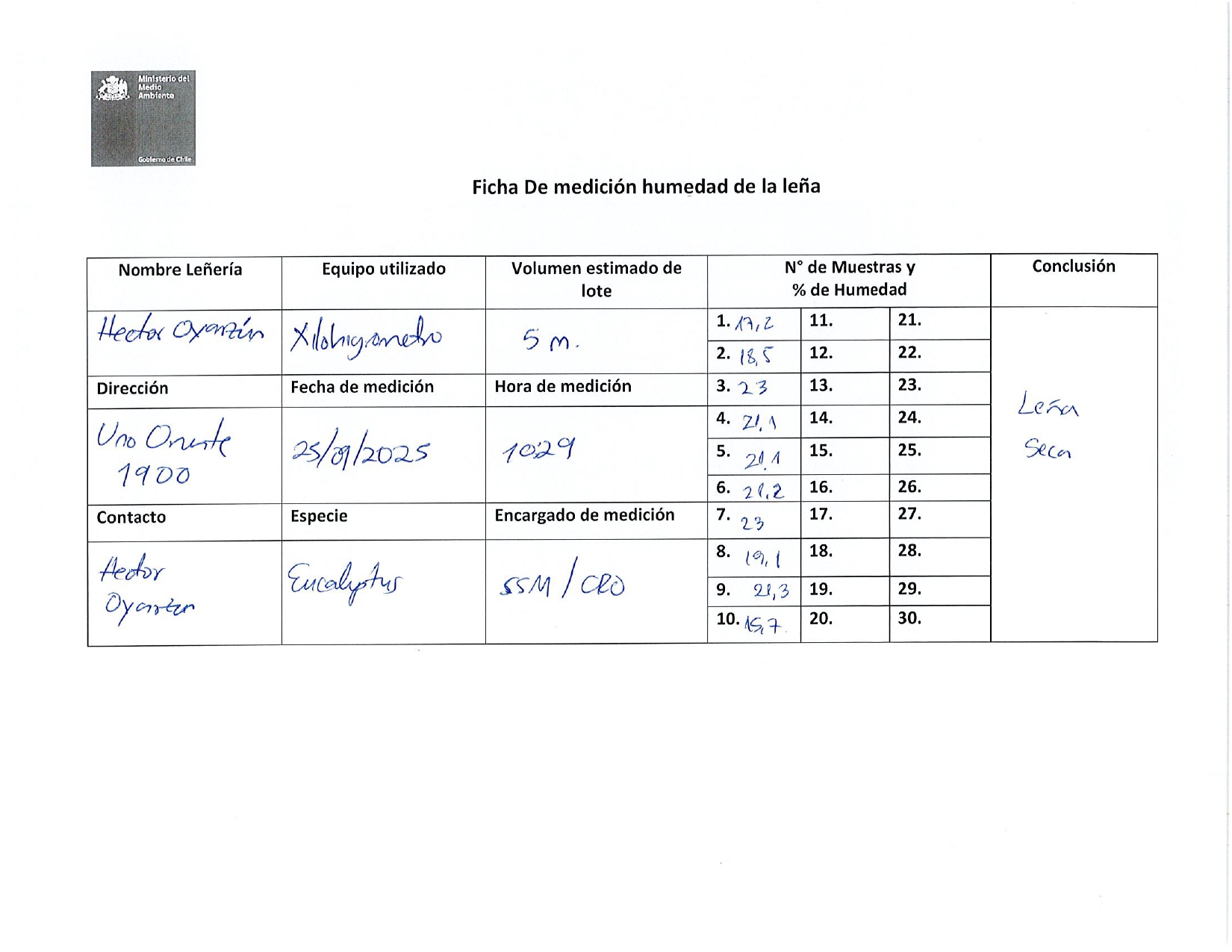 Héctor Oyarzún | Uno Oriente N°1900 | 962374537 | Eucaliptus | M3 y Saco | 25-09-2025 |